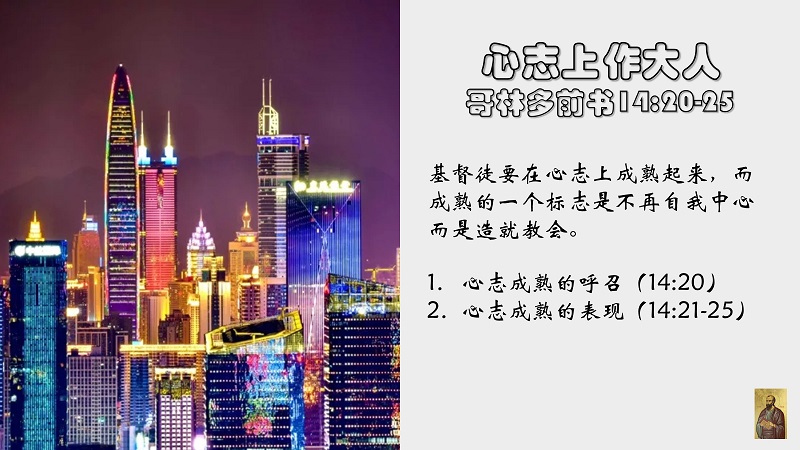 哥林多前书14:20-25 在心志上作大人