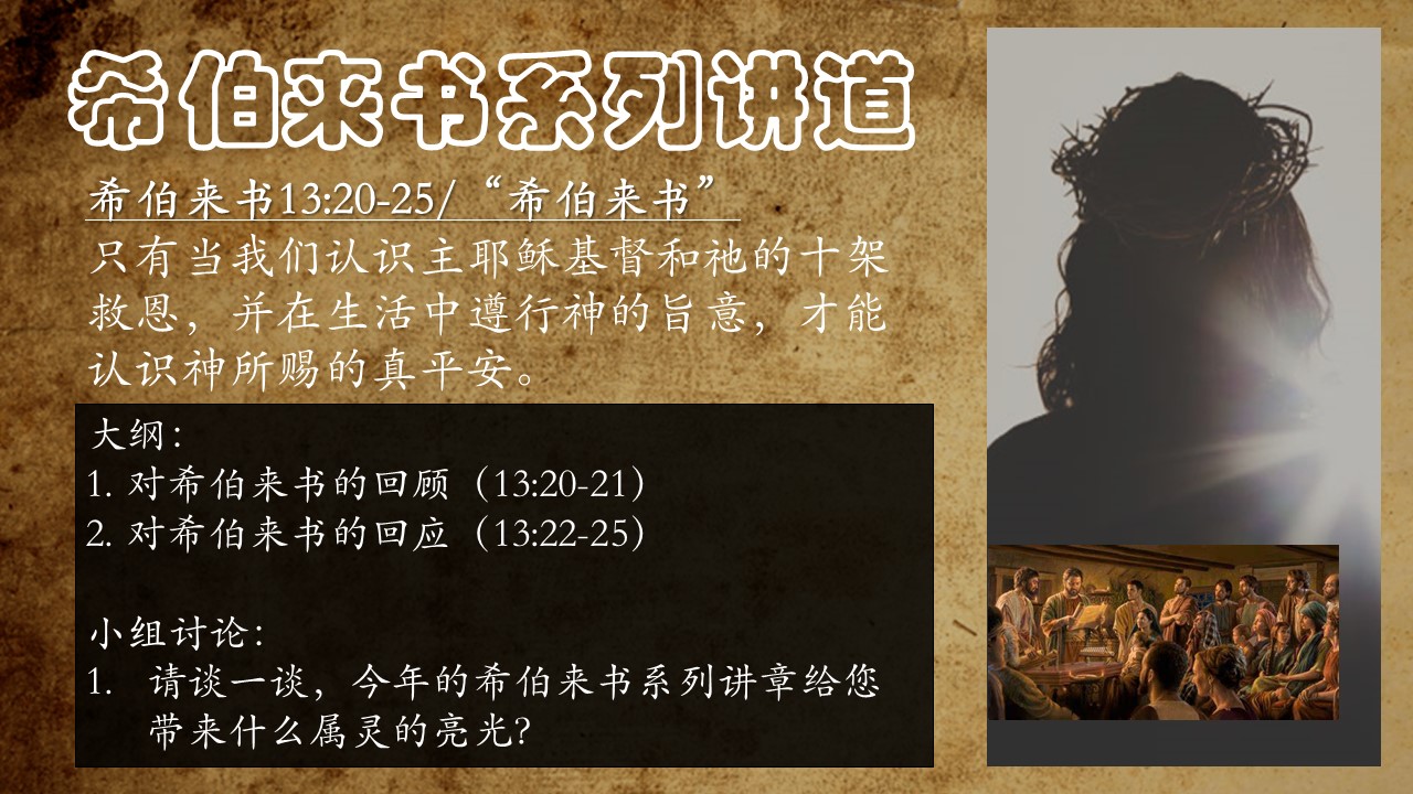 愿神使用希伯来书这卷宝贵的书信来祝福你,愿你的灵命成熟起来!