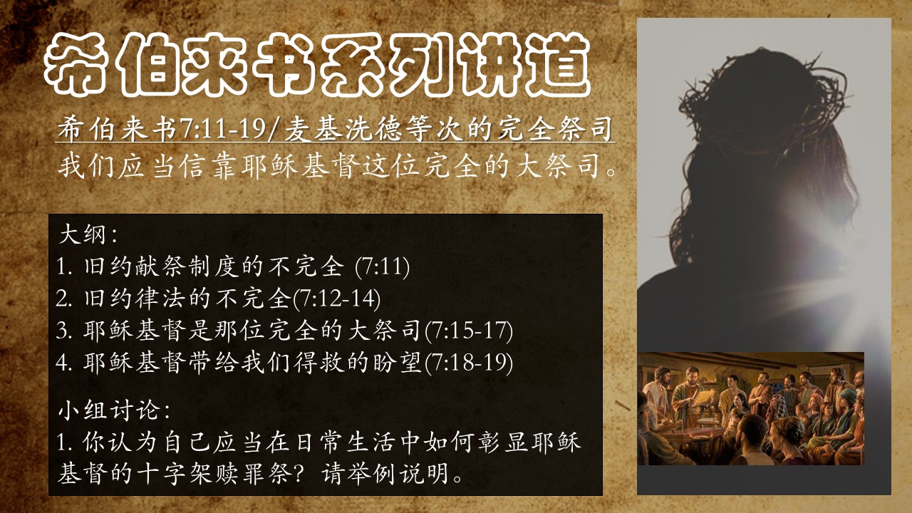 希伯来书7:11-19 麦基洗德等次的完全大祭司